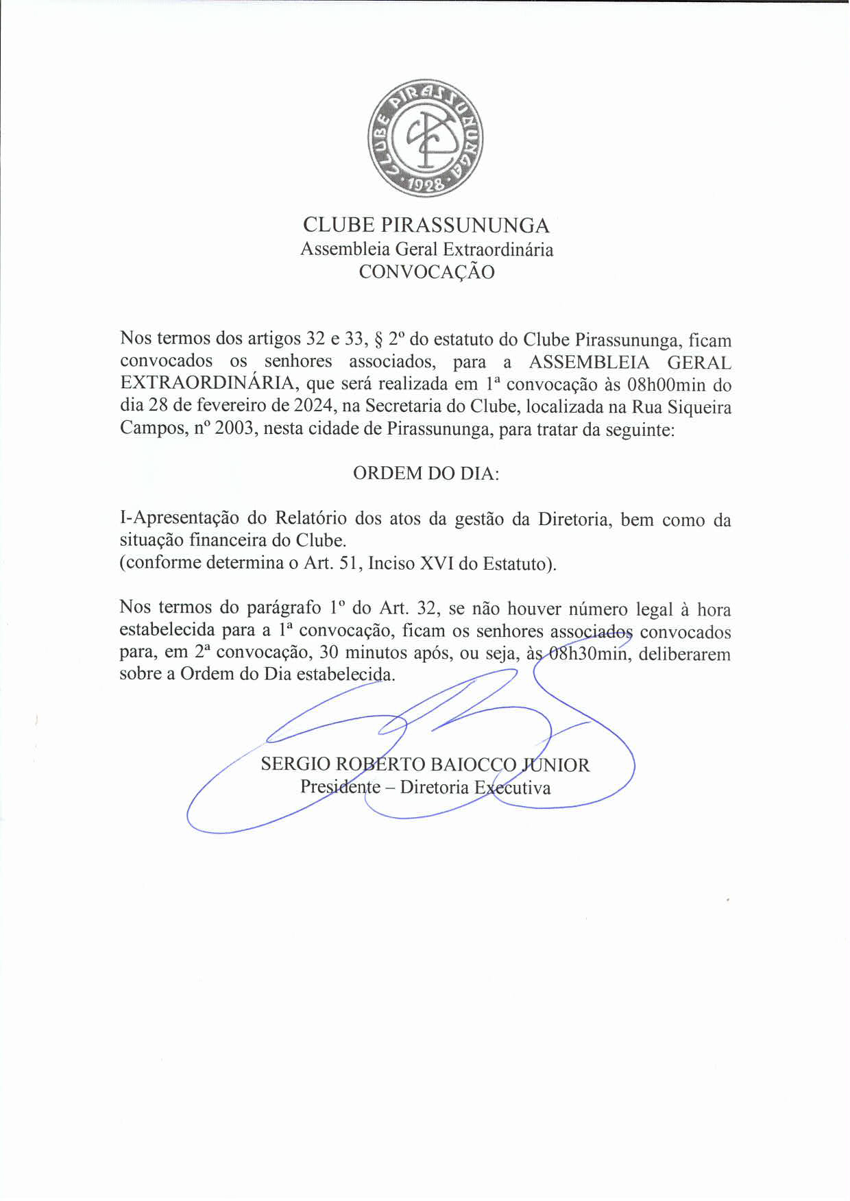 Convocação: Assembleia Geral Extraordinária